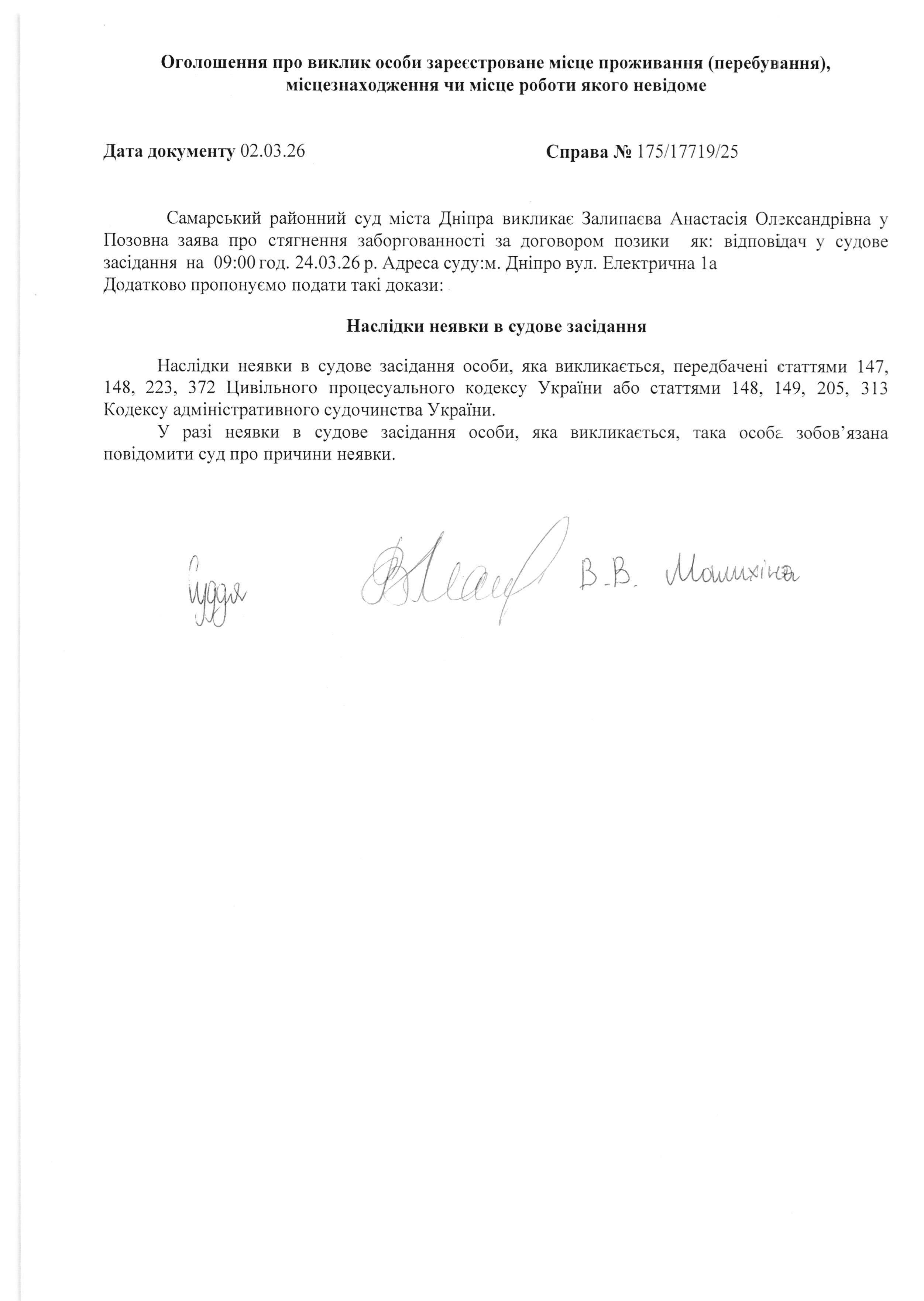 Оголошення про виклик Залипаєва А. О. Справа №175/17719/25