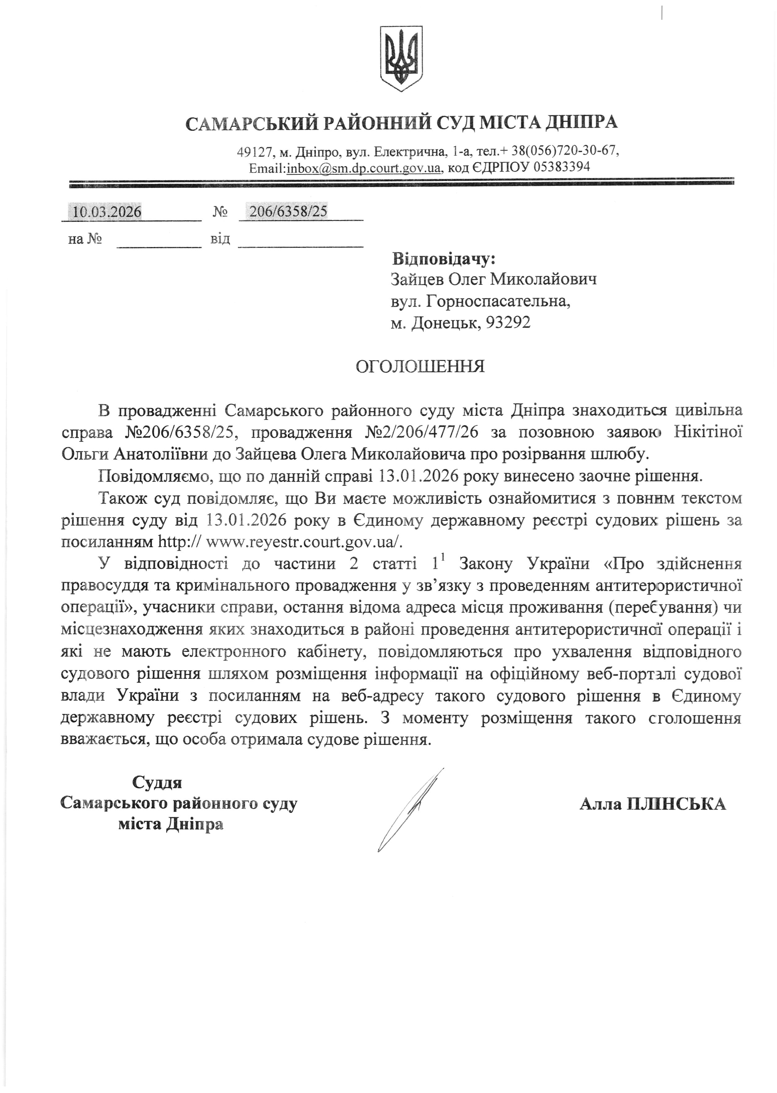 Оголошення про виклик особи в суд та повідомлення про судове рішення