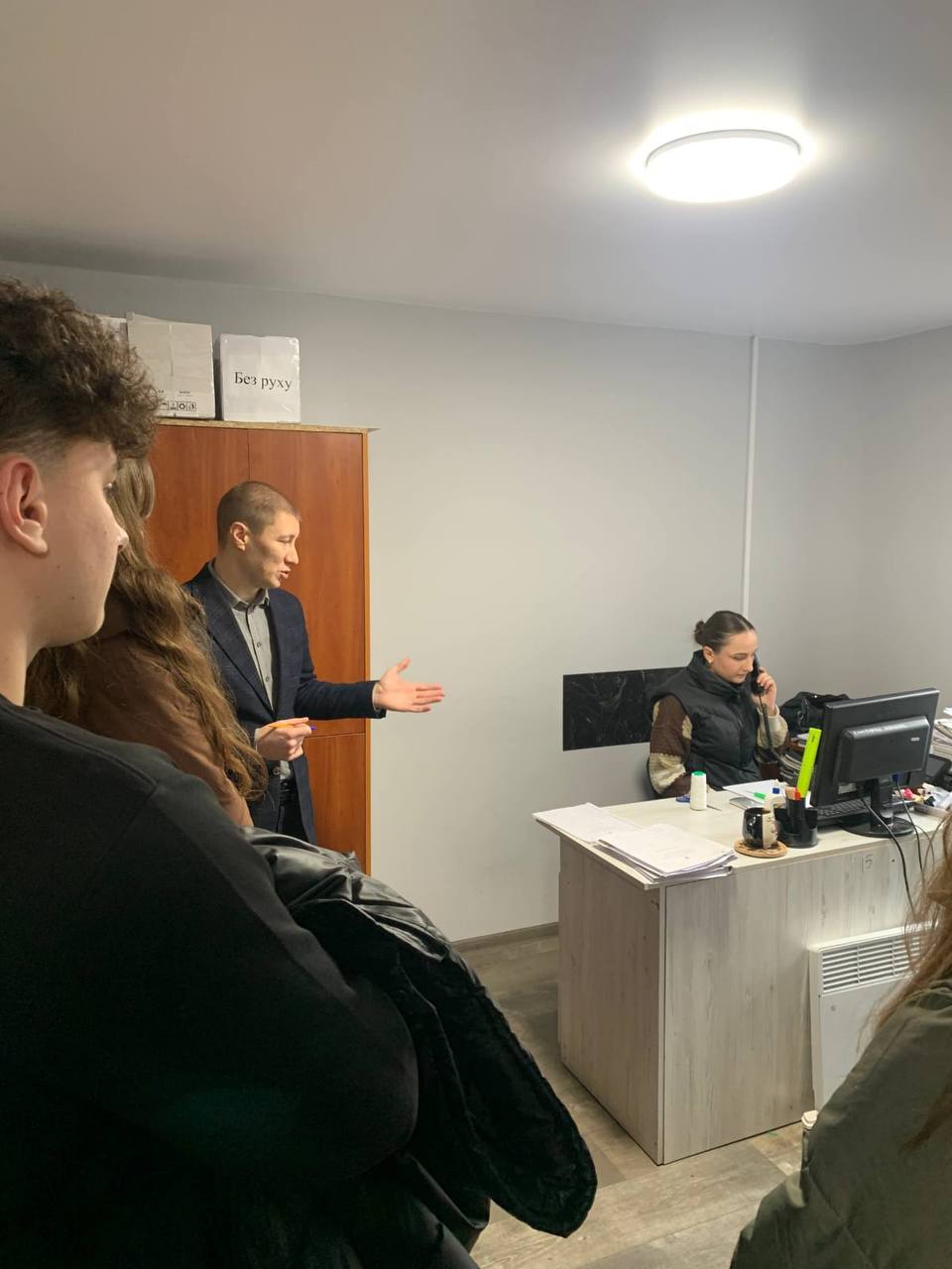 Під час візиту суддя Гаркуша В’ячеслав Вікторович ознайомив студентів із організацією роботи суду, зокрема з порядком прийому та оформлення матеріалів у канцелярії суду, особливостями функціонування так званого «малого офісу судді», до складу якого входять суддя, помічник судді та секретар судового засідання. Було детально роз’яснено розподіл повноважень між працівниками та практичні аспекти підготовки справ до судового розгляду.